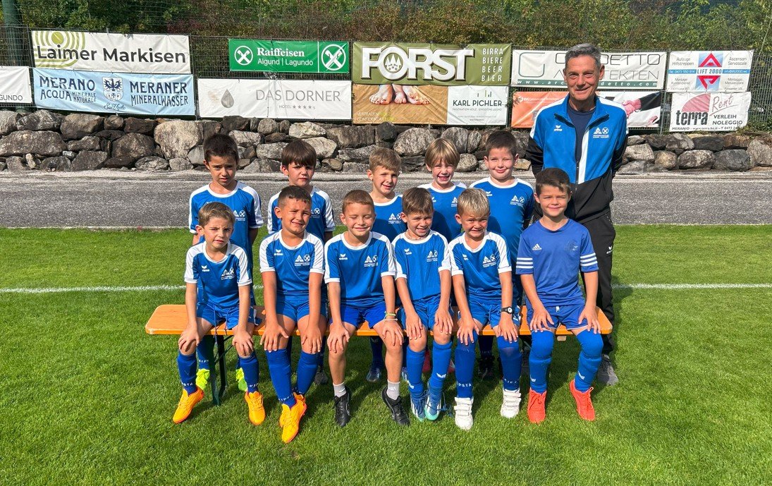 Hinten .v.l.: Di Pietro Luca, Prader Jonas, Flarer Theo, Pedrolli Sebastian, Zvizdic Emin, Preims Peter (Trainer)